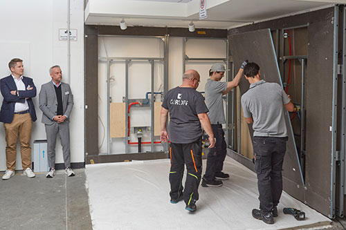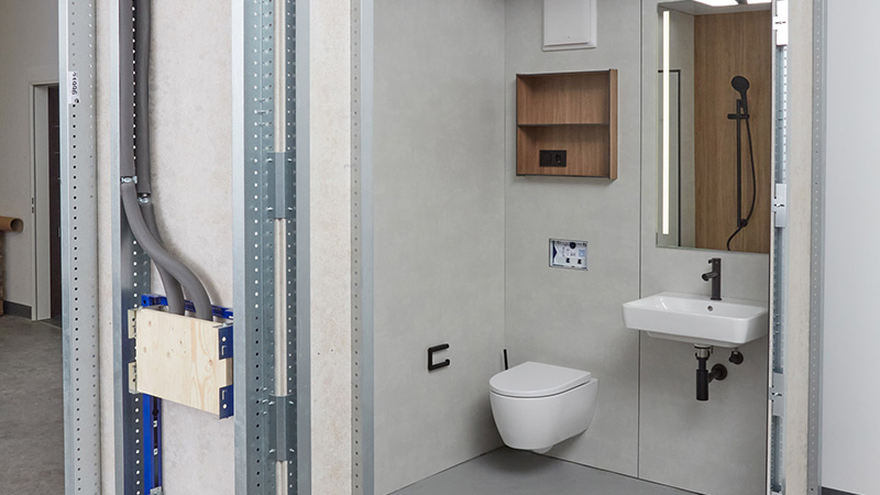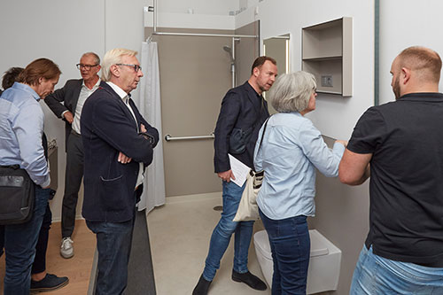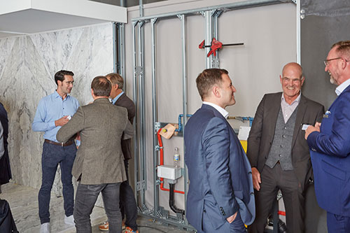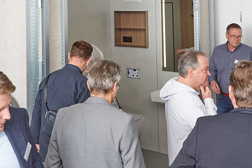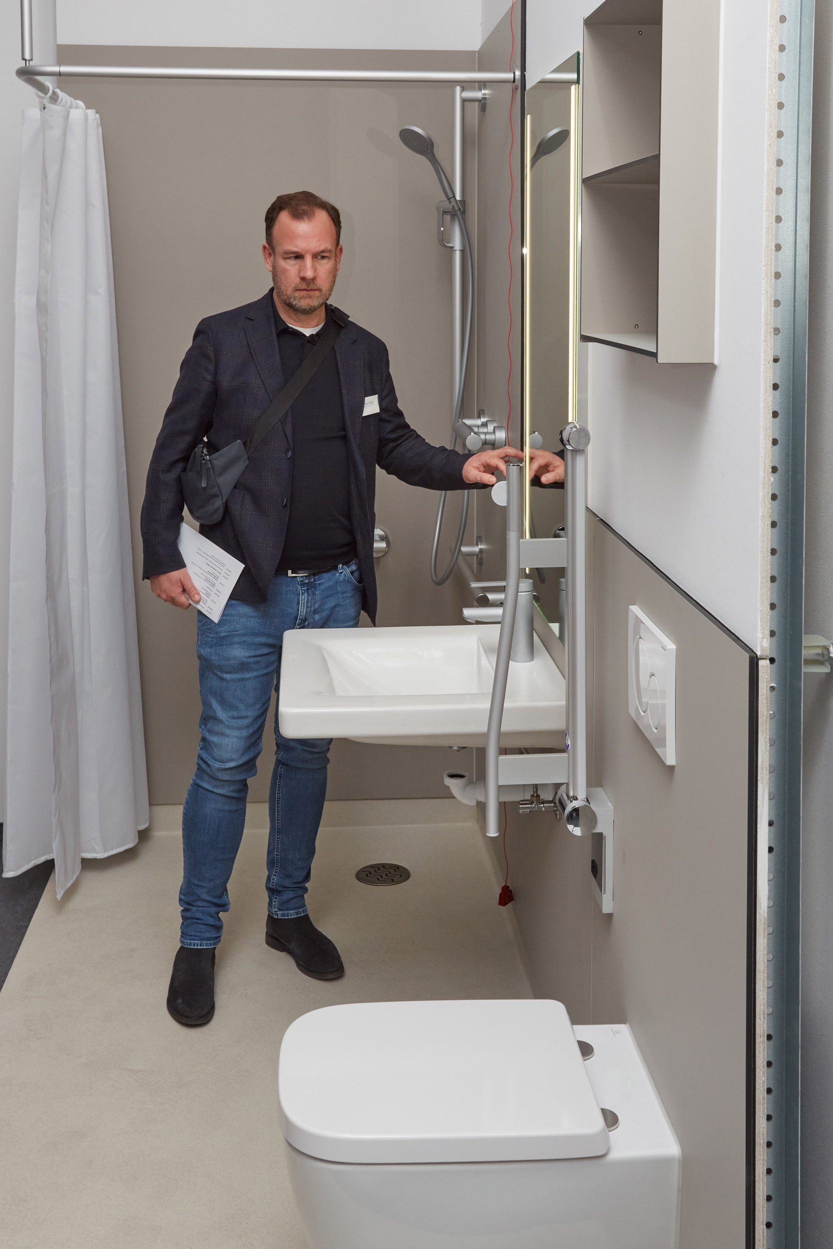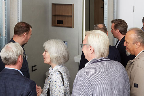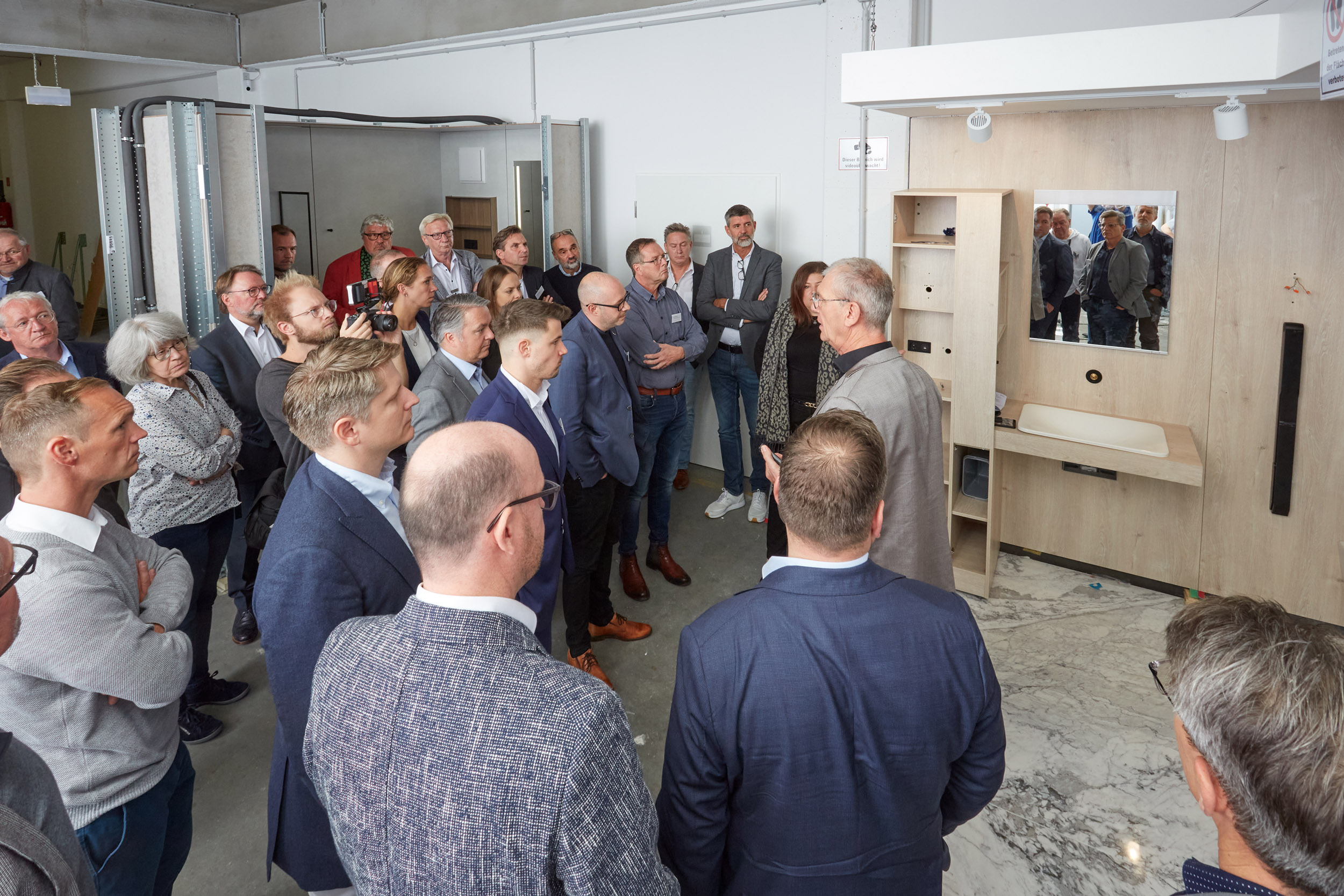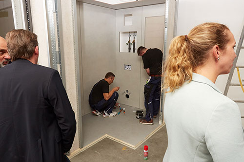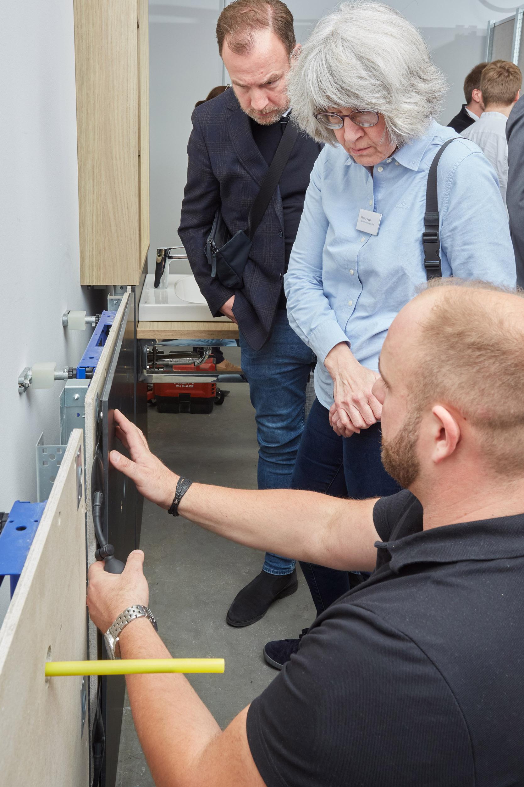 Von der Geschwindigkeit und Effizienz im Modulbau konnten sich die Teilnehmerinnen und Teilnehmer sogar live vor Ort bei KEUCO überzeugen: Während der Veranstaltung wurden zwei unterschiedliche systemische Lösungen für das Bad von BADIA, der Gerloff-GmbH und der IBS-GmbH innerhalb weniger Stunden auf der KEUCO Workshopfläche aufgebaut. Diese Lösungen mit hohem ästhetischem Anspruch sind für fast alle Objekttypen, wie Hotel, HealthCare, Office, Living, studentisches Wohnen oder Apartments geeignet. In der Kooperation sind Lösungen vom geförderten Wohnungsbau, Klinikbäder für gesetzlich – und privat Versicherte, Luxusbädern u.v.m. realisierbar.