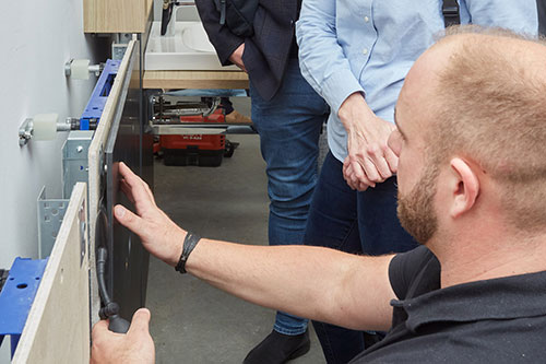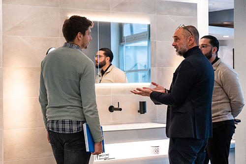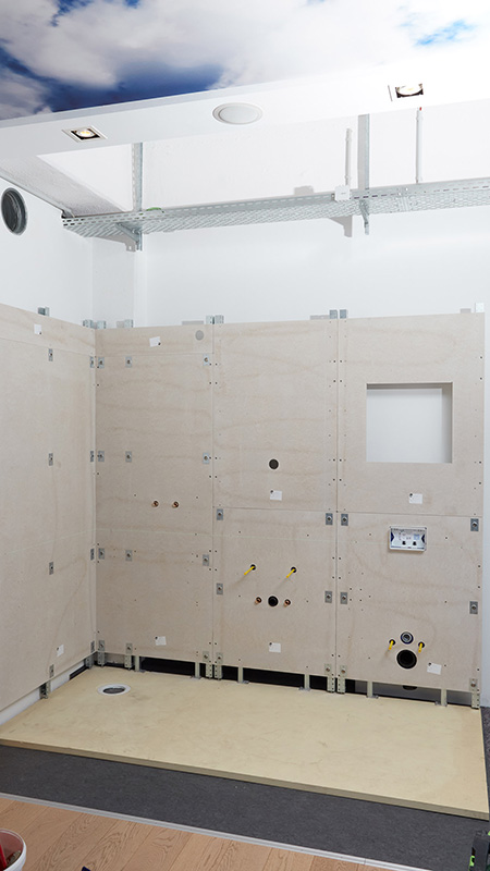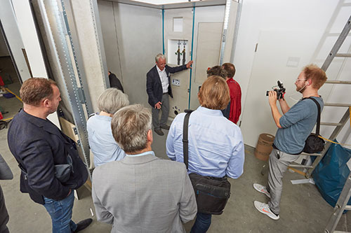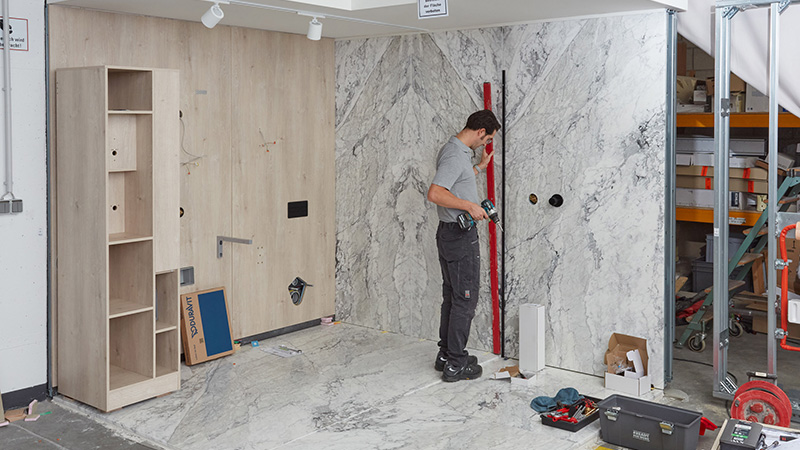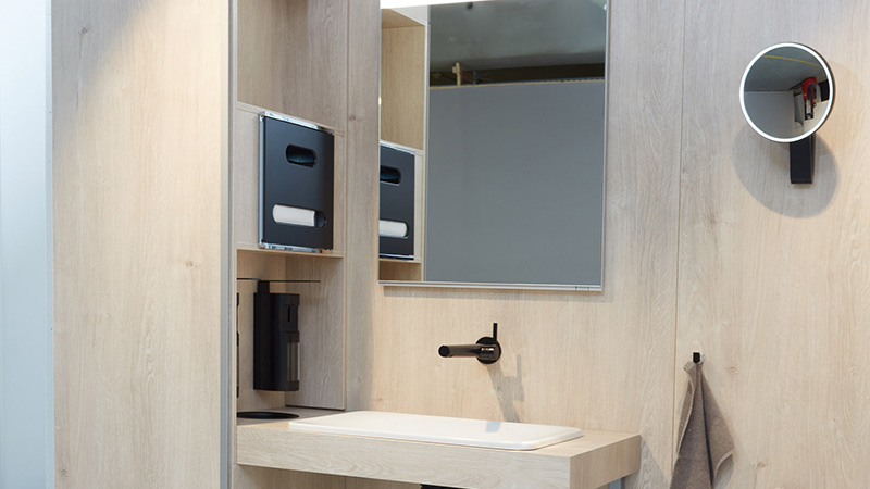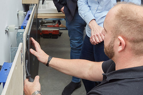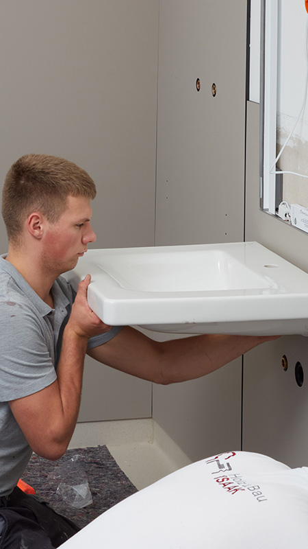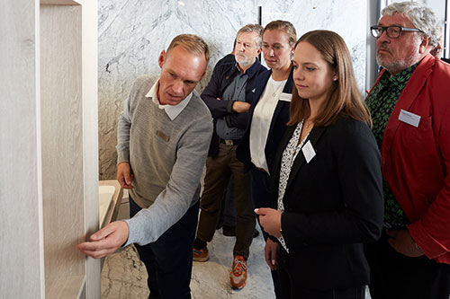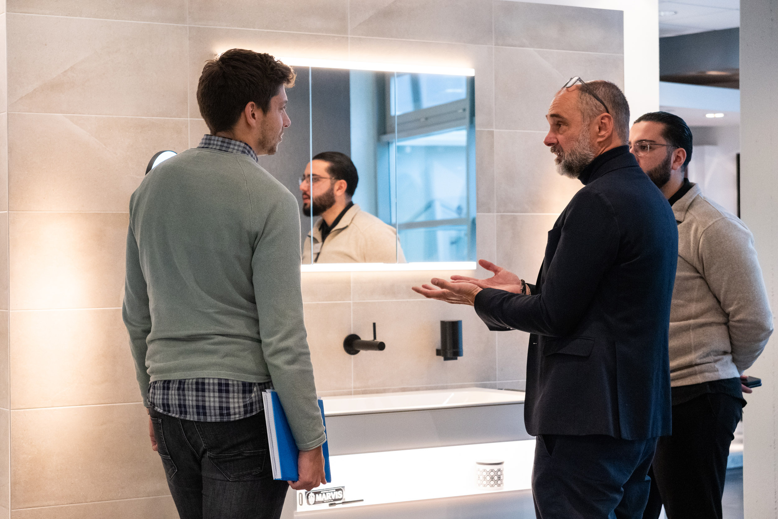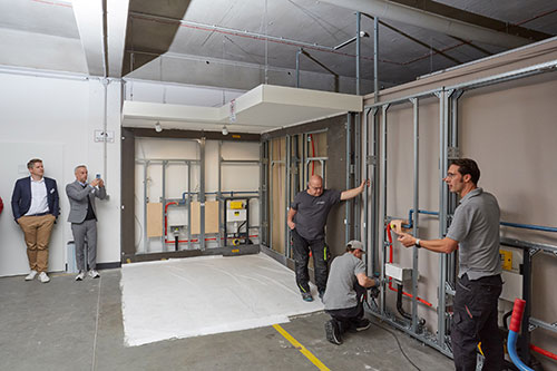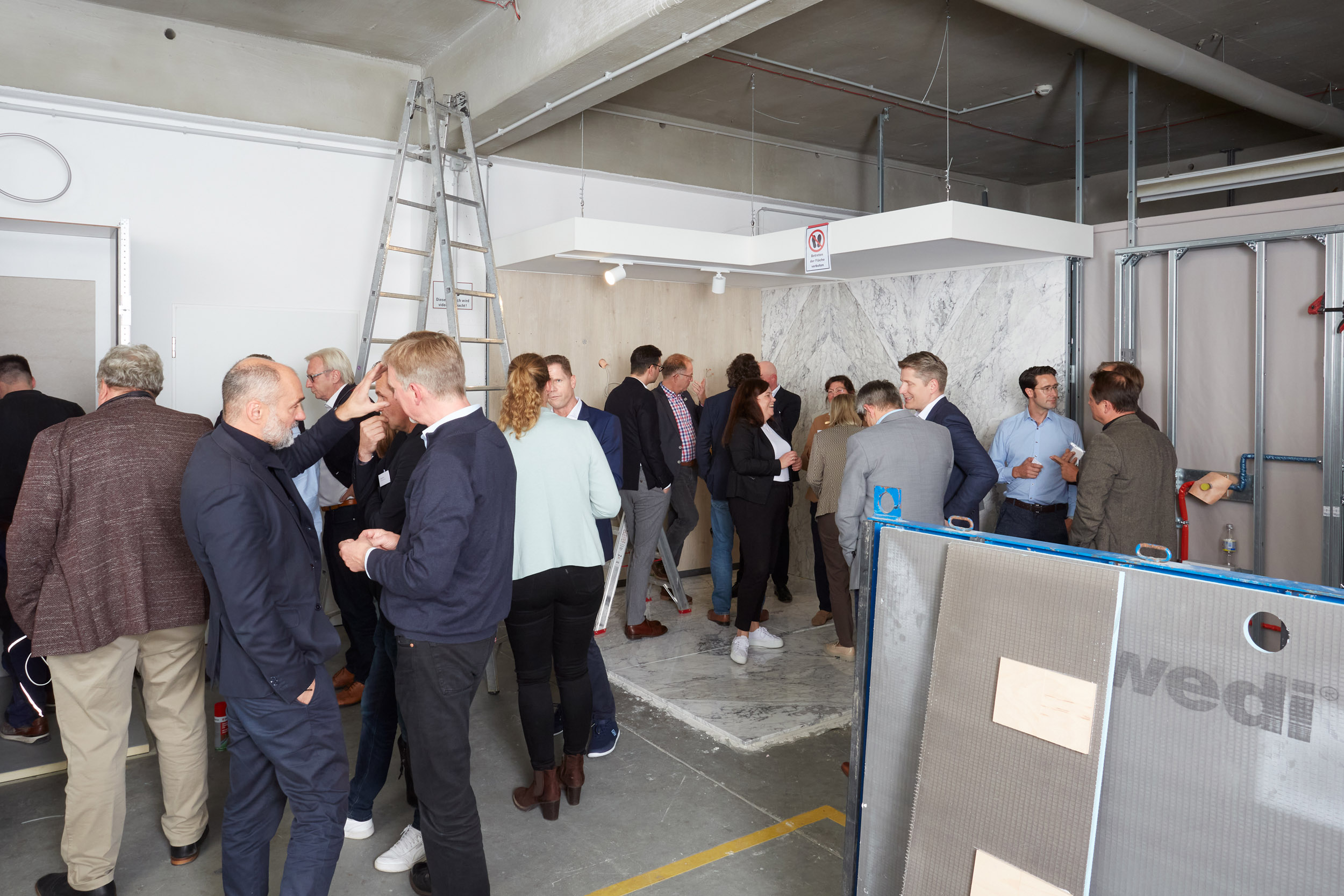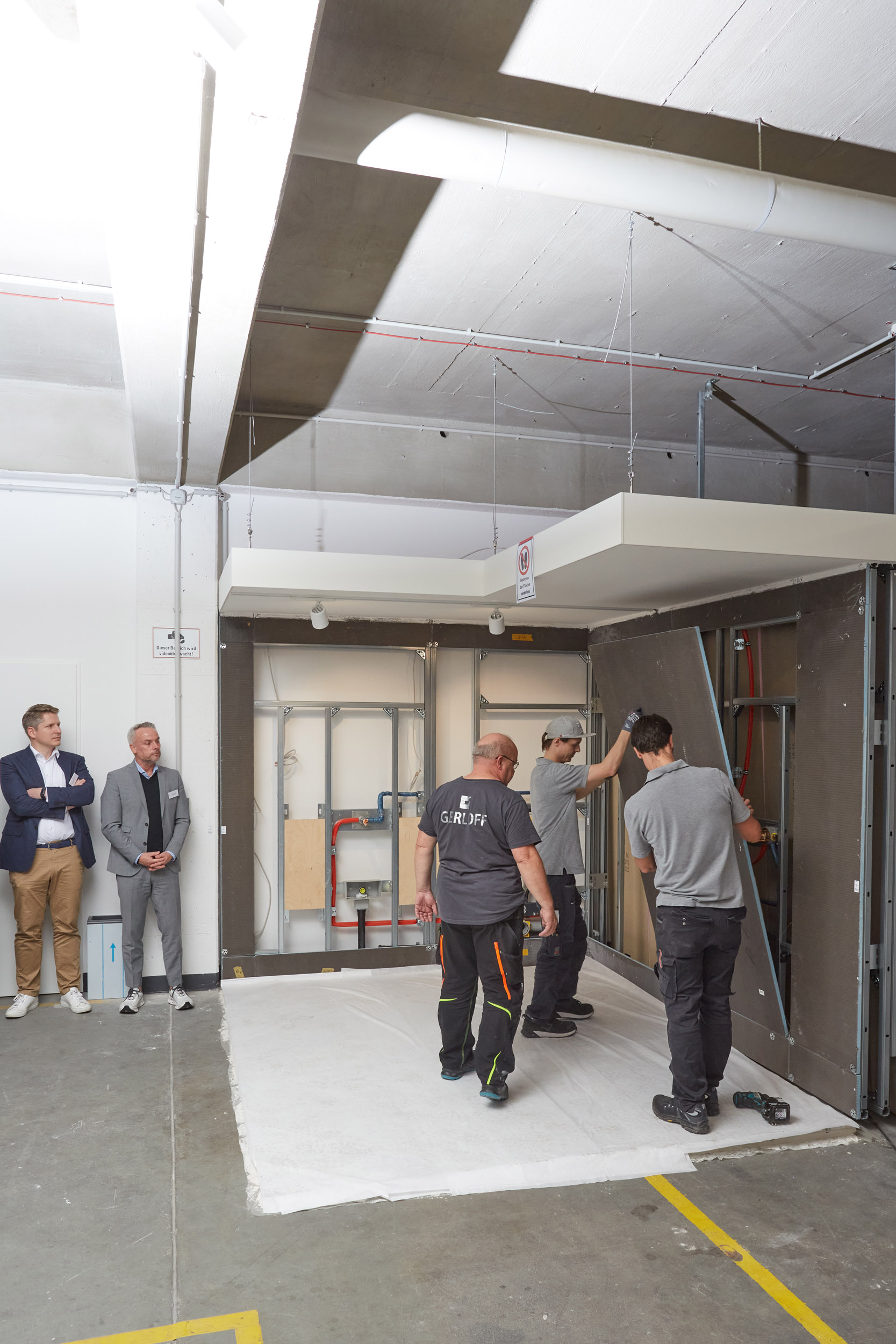 Von der Geschwindigkeit und Effizienz im Modulbau konnten sich die Teilnehmerinnen und Teilnehmer sogar live vor Ort bei KEUCO überzeugen: Während der Veranstaltung wurden zwei unterschiedliche systemische Lösungen für das Bad von BADIA, der Gerloff-GmbH und der IBS-GmbH innerhalb weniger Stunden auf der KEUCO Workshopfläche aufgebaut. Diese Lösungen mit hohem ästhetischem Anspruch sind für fast alle Objekttypen, wie Hotel, HealthCare, Office, Living, studentisches Wohnen oder Apartments geeignet. In der Kooperation sind Lösungen vom geförderten Wohnungsbau, Klinikbäder für gesetzlich – und privat Versicherte, Luxusbädern u.v.m. realisierbar.