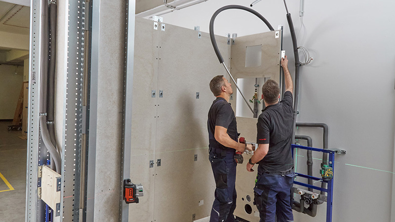 Damit lassen sich auch komplexe Sanierungen in kürzester Zeit zu kalkulierbaren Kosten umsetzen, genauso wie die Verkürzung der Bauzeiten in Neubauten, damit die Immobilie möglichst früh in Betrieb gehen kann.